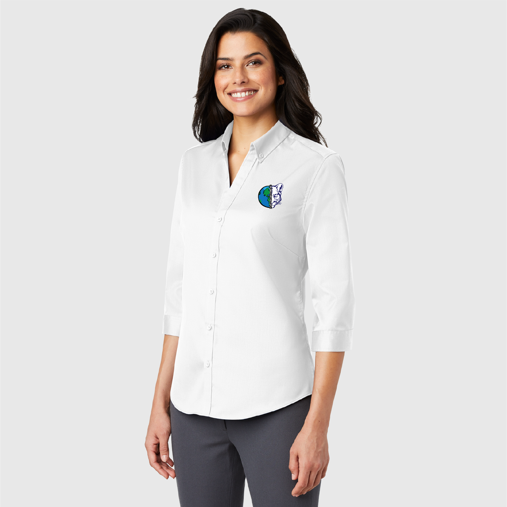 Women's Port Authority 3/4-Sleeve SuperPro Twill Shirt - Embroidered Logo